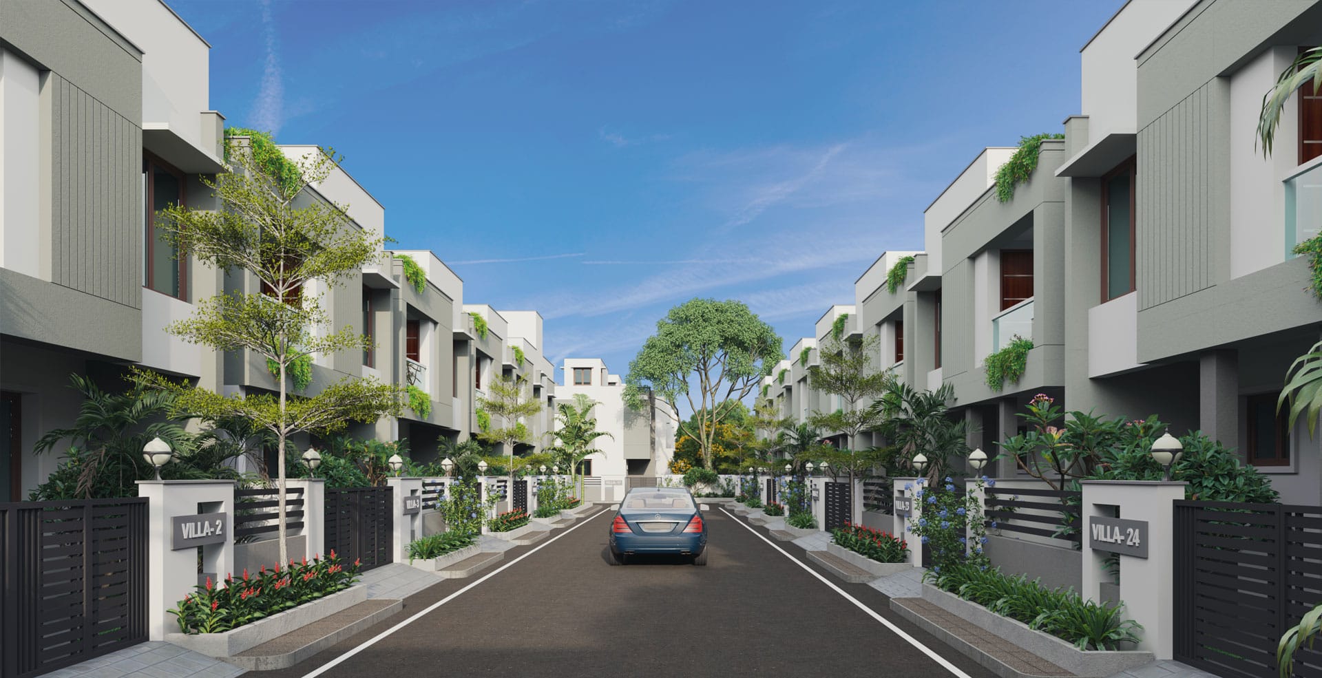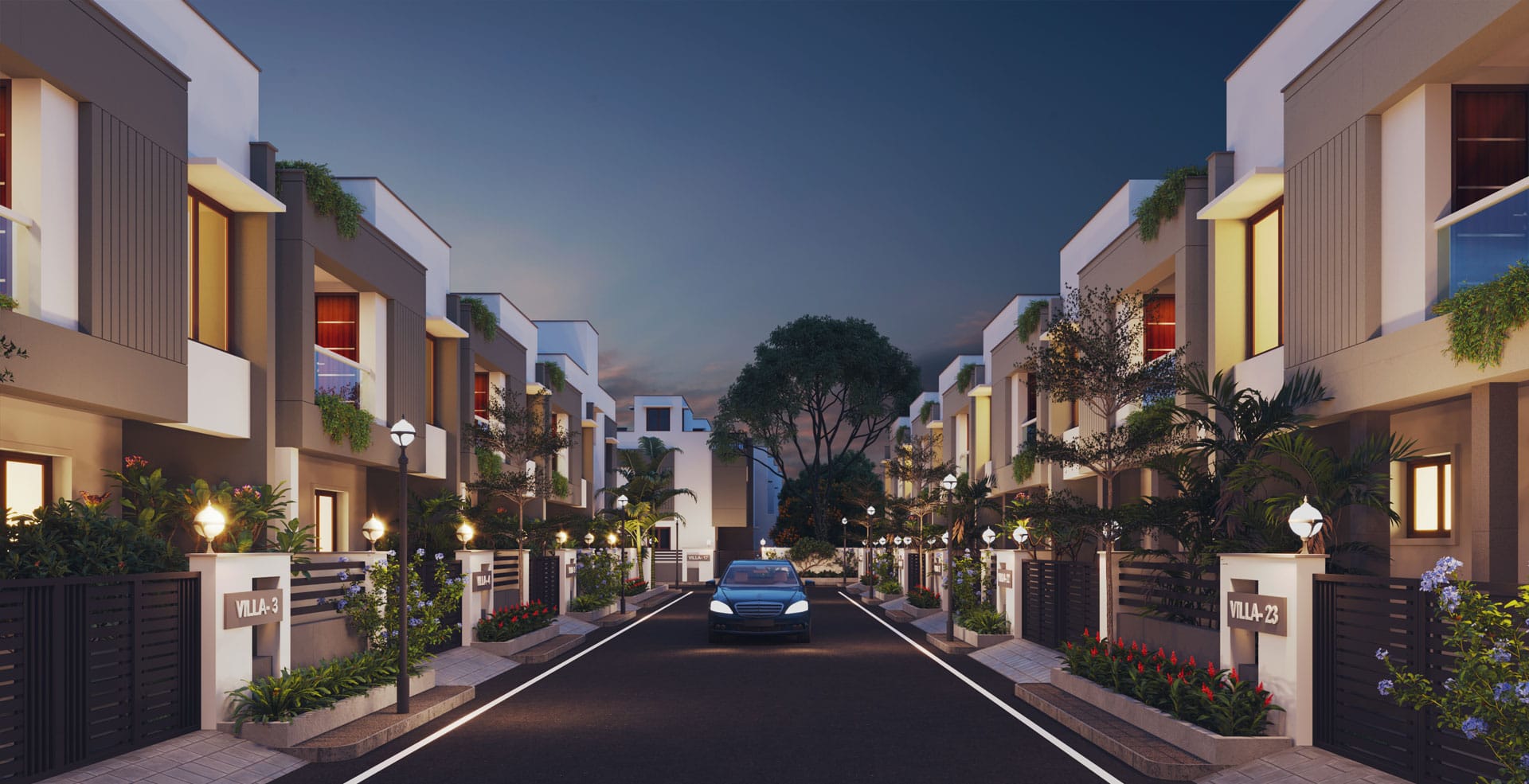- Three-phase power supply with concealed wiring will be provided. Separate meter will be provided for each villa, and the main board will be located out side the villa at the suitable place suggested by architects / MEP consultant.